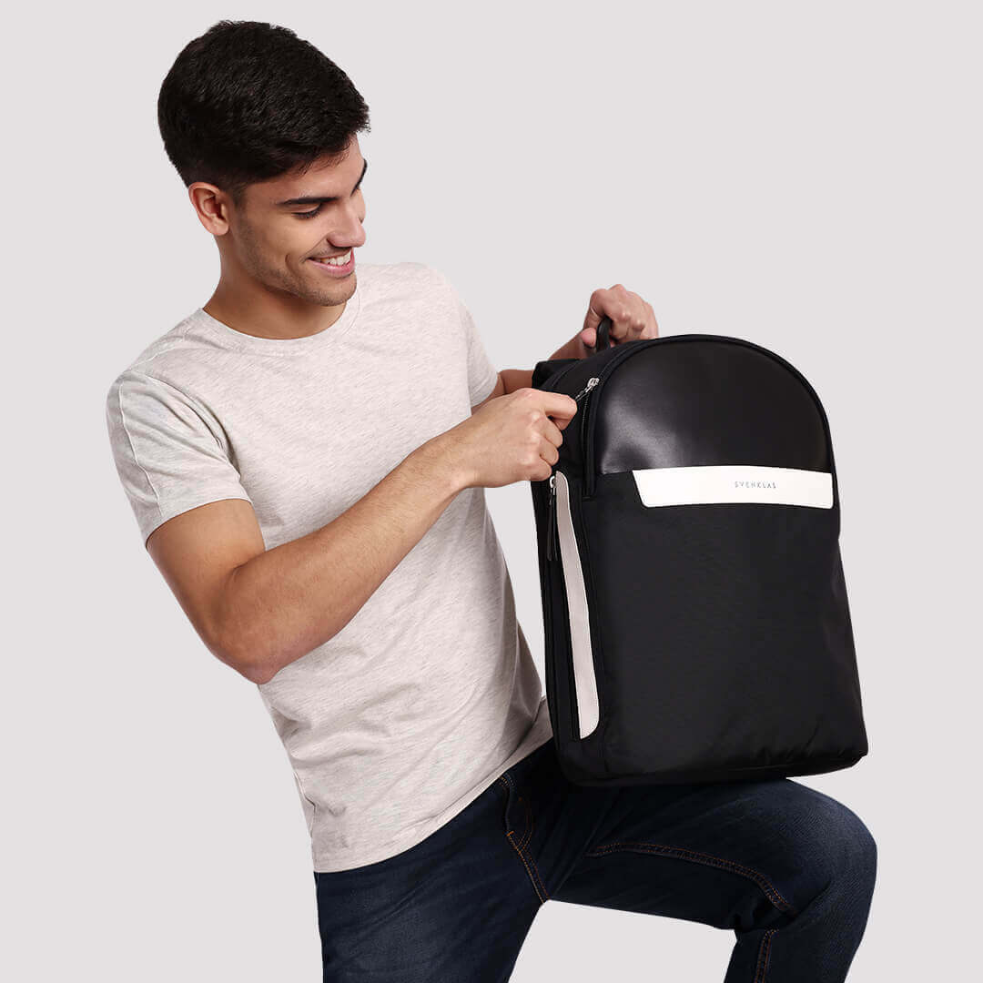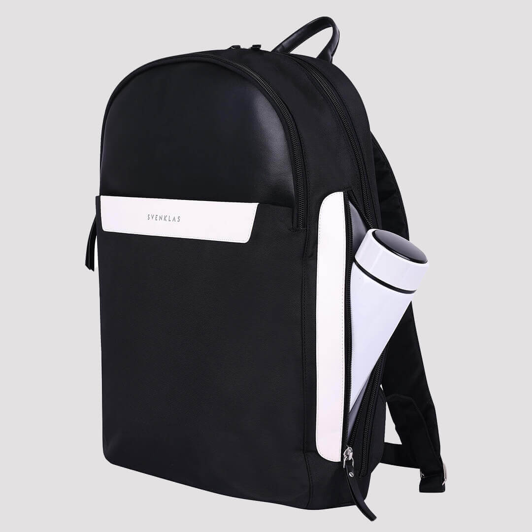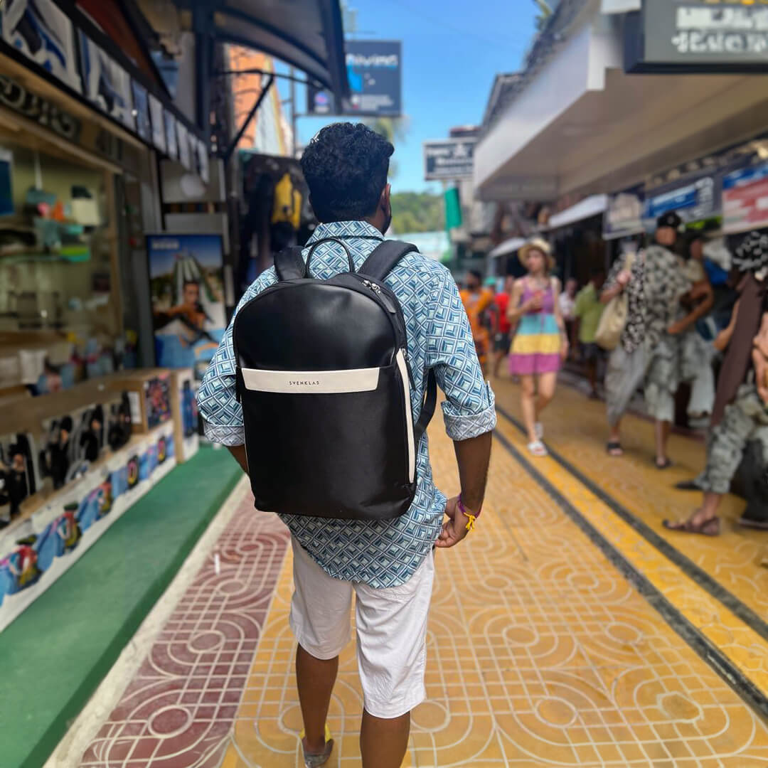 - Ergonomic padded shoulder straps with Svenklas signature leather loops to keep you extra comfortable while carrying the backpack on your shoulder. The strap features easily adjustable metallic buckles.