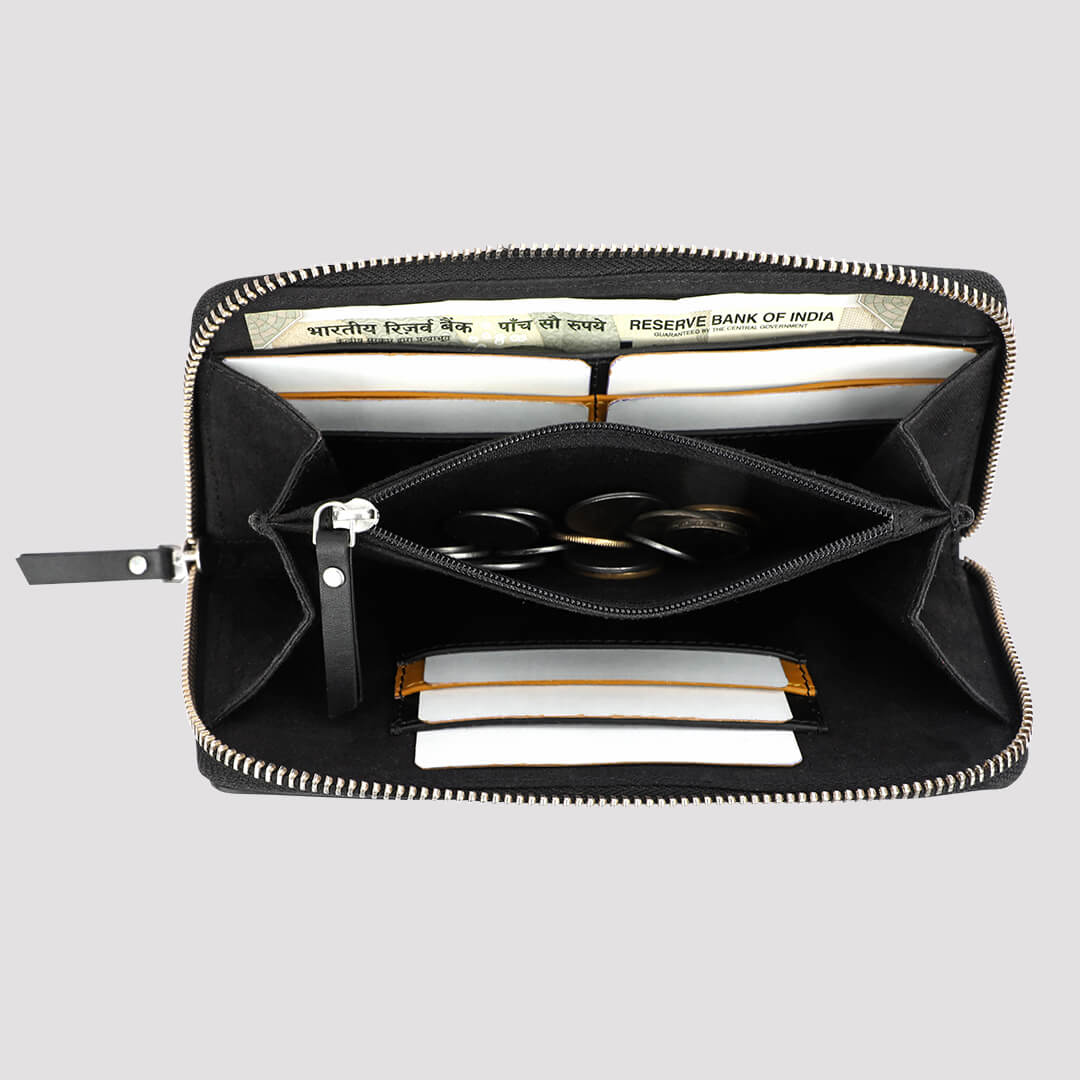 - Dedicated cash sleeve to store your cash, bills and receipts.