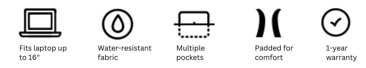 - 16” inch separate laptop compartment with velcro closure.