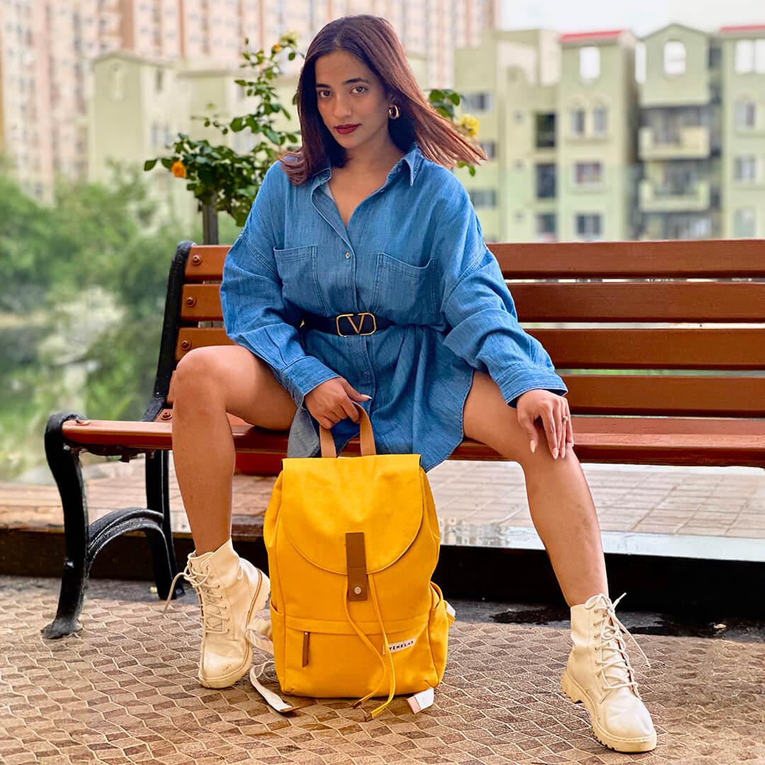 Ideal for sun-soaked escapades and made with Natural Organic Dye, the Hagen backpack in Lemon Chrome color is your ideal companion from sunlit strolls to adventurous outings.
