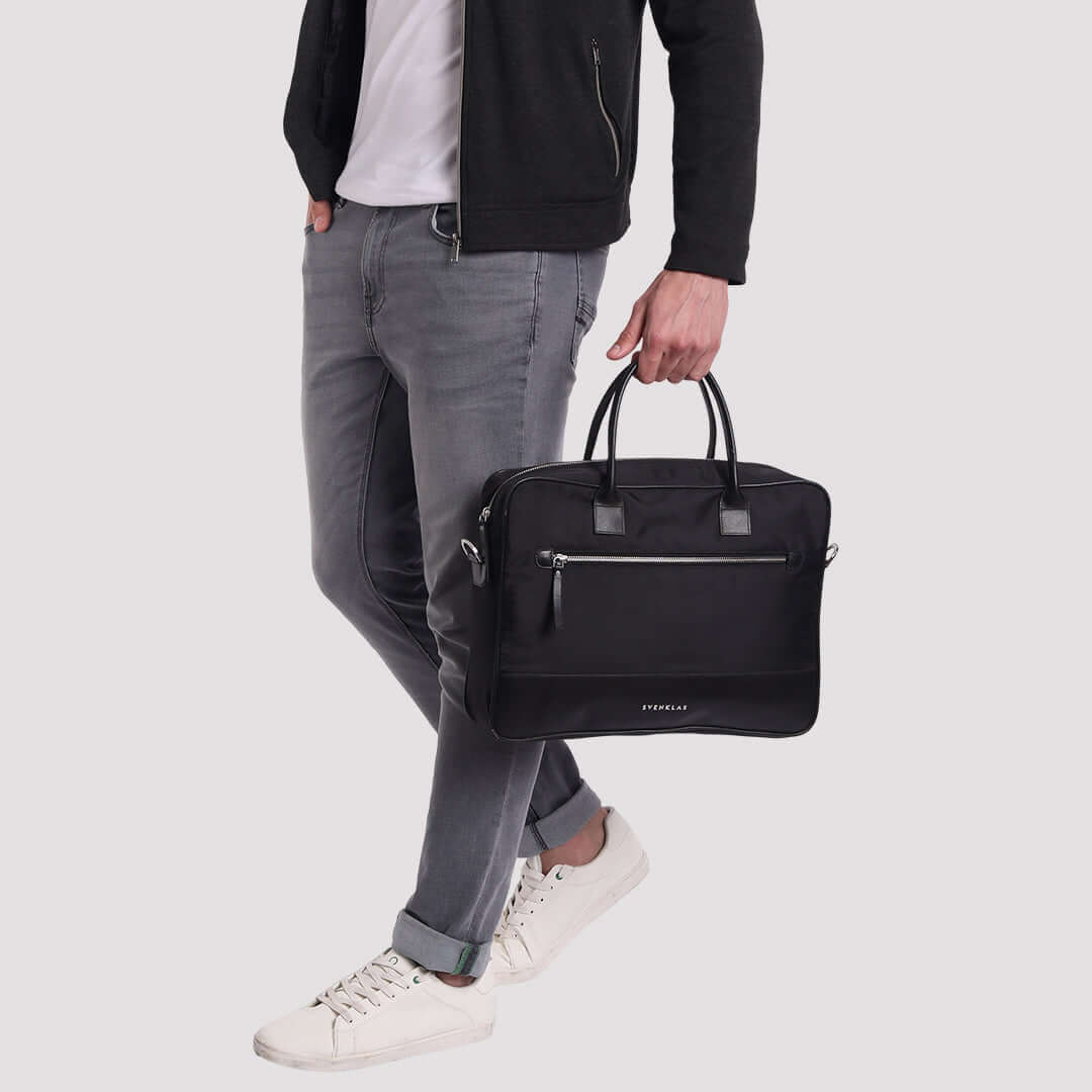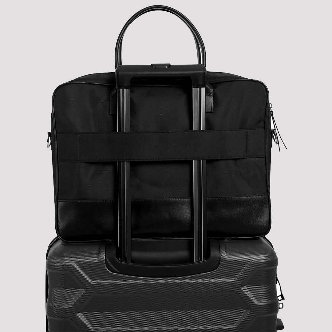 The Melvin messenger design is focused on creating functional sophistication. It stands out in the commute as the luggage sleeve on the backside secures to any trolley or suitcase for a smooth ride.
