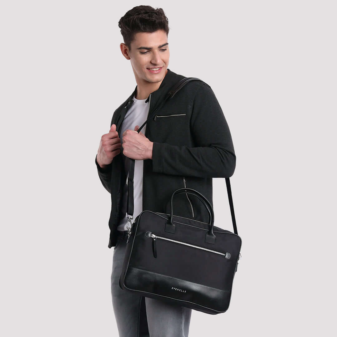 Wide shoulder strap will adjust to your shape to help you carry comfortably all day long. The inside is fitted with a variety of organizers for devices and in-flight essentials. A separate laptop compartment and a range of organized internal pockets will keep all your essentials in the right place.